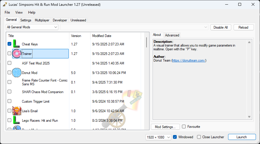 Our current focus is developing new hacks to enable features that were never part of the original game. This work pushed the limits of The Simpsons Hit & Run and provided the modding community with powerful new possibilities.